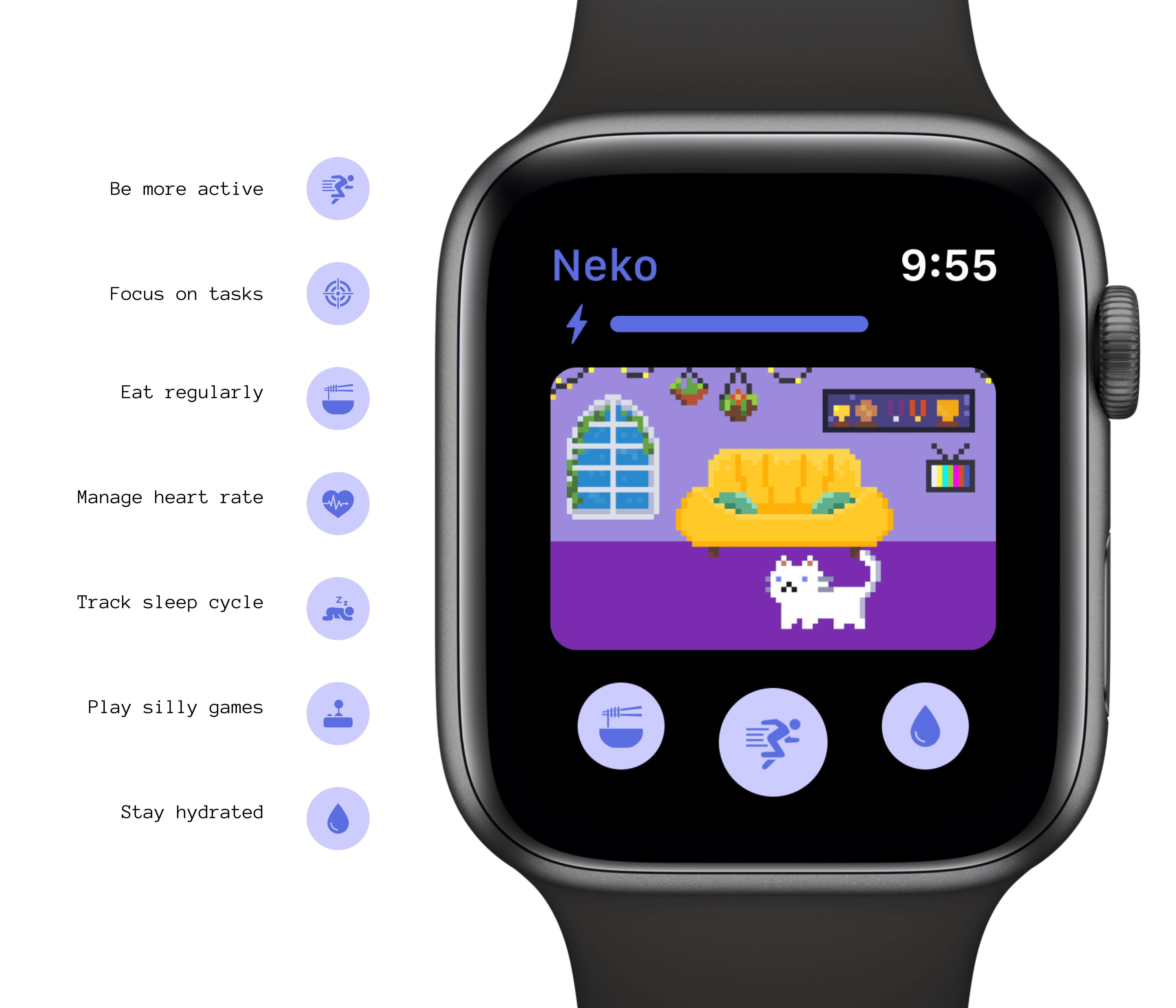 A cute, pixel art based app exploration for wearables.